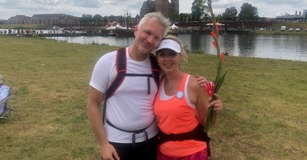 In 2019 liep ze de 4Daagse al samen met haar zoon, nadat haar man een jaar eerder was overleden. Het halen van het kruisje gaf haar toen de kracht om het leven weer op te pakken. Ze loopt dezelfde wandelmars nu met haar nieuwe man. Haar rechterarm is aangedaan door Parkinson dus lopen ze hand in hand zodat haar man haar rechterarm kan sturen. “Zo vullen we elkaar aan, zowel lichamelijk als mentaal.”